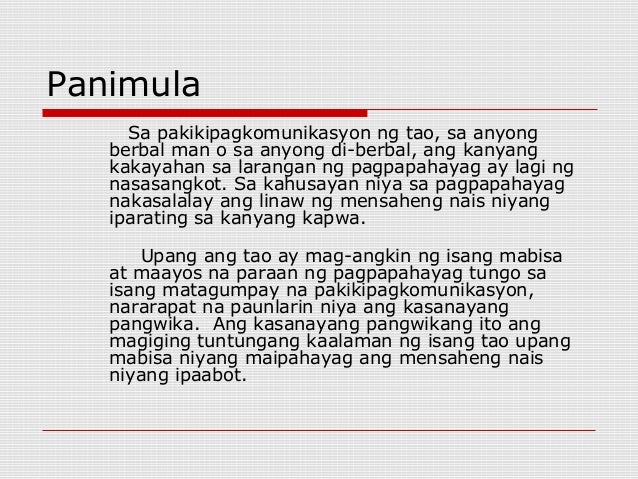 Isang uri ng inip na dapat pakinggan kaysa patahimikin upang subukang unawain kung ano ang likas na mensahe nito frame ng isip. 1 on a question Isang bagay na ginagawa ng isang tao karaniwang isang aytim ng interes sa kultura o pangkasaysayan. Upang Makapangatuwiran sa Isang Paksa.