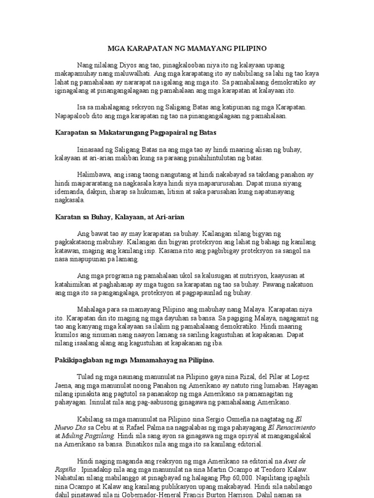Mga Karapatan Ng Mamayang Pilipino